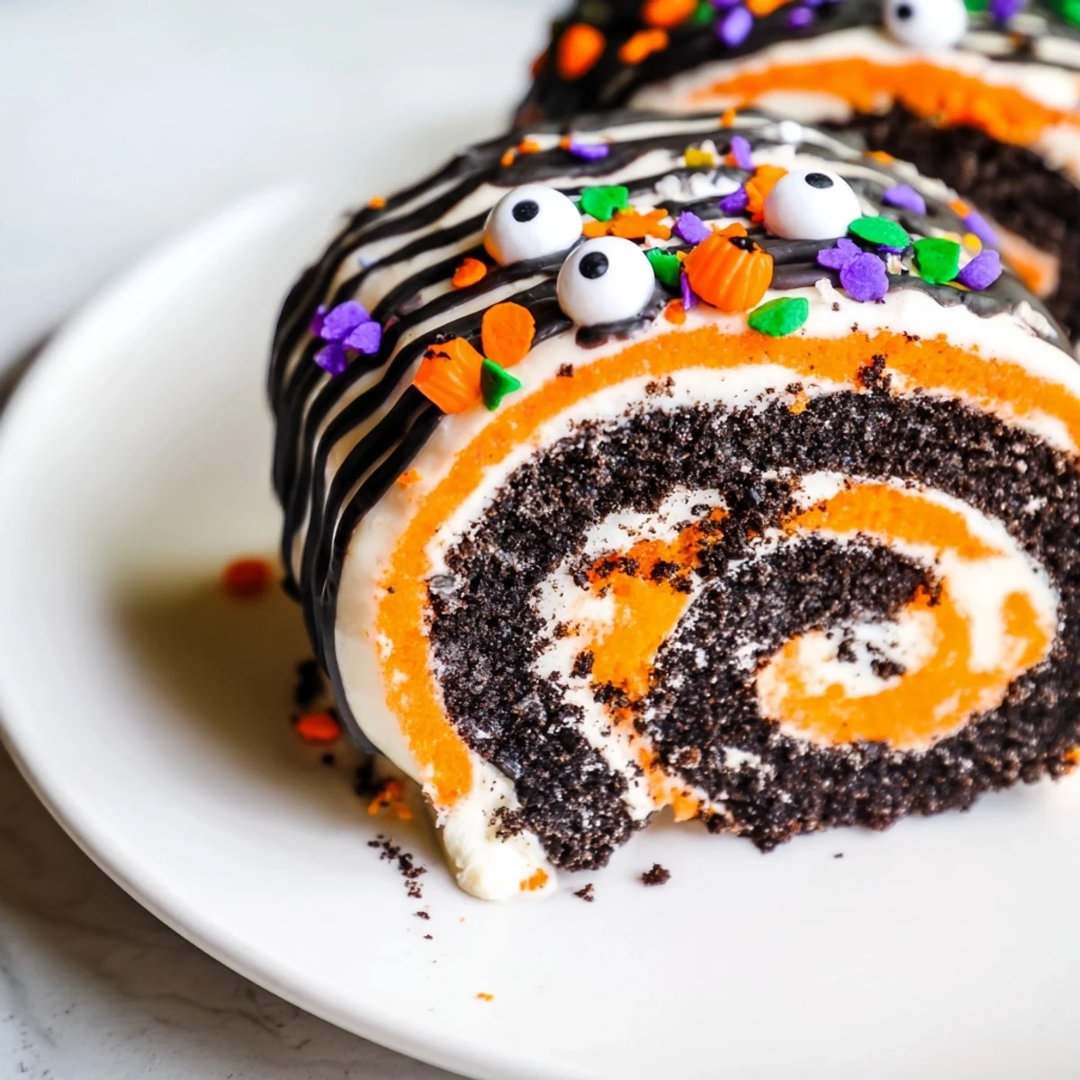 Create a showstopping Halloween dessert with this no-bake Oreo roll. Crushed Halloween Oreos form a rich, chocolatey base that gets rolled with vibrant orange or purple whipped cream. The result is a stunning swirled log that looks impressive but requires zero oven time. Simply chill, slice, and serve this festive treat that's perfect for your Halloween gathering.